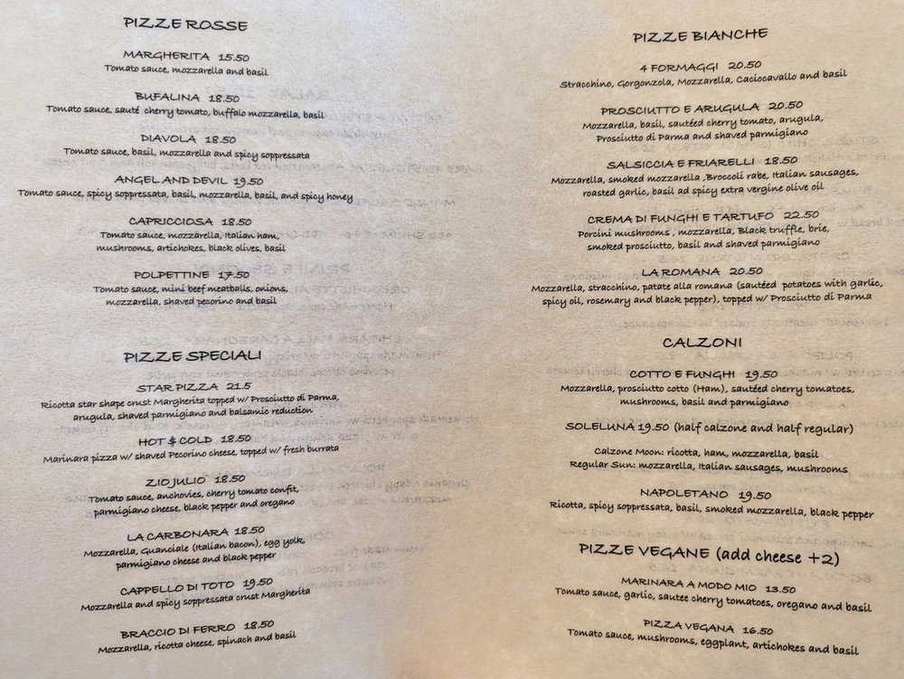 Porcini mushrooms pate, fior di latte, black truffle, brie, porcini mushrooms, smoked prosciutto, basil and shaved Parmigiano.